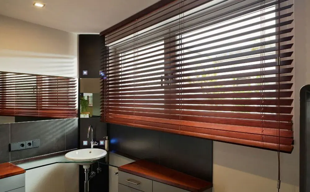 Мы предлагаем заказать жалюзи из дерева для сухих помещений. Для объектов с высокой влажностью (например, ванные комнаты или кухня) лучше выбрать жалюзи с ламелями из алюминия, которые устойчивы к влаге и перепадам температур.